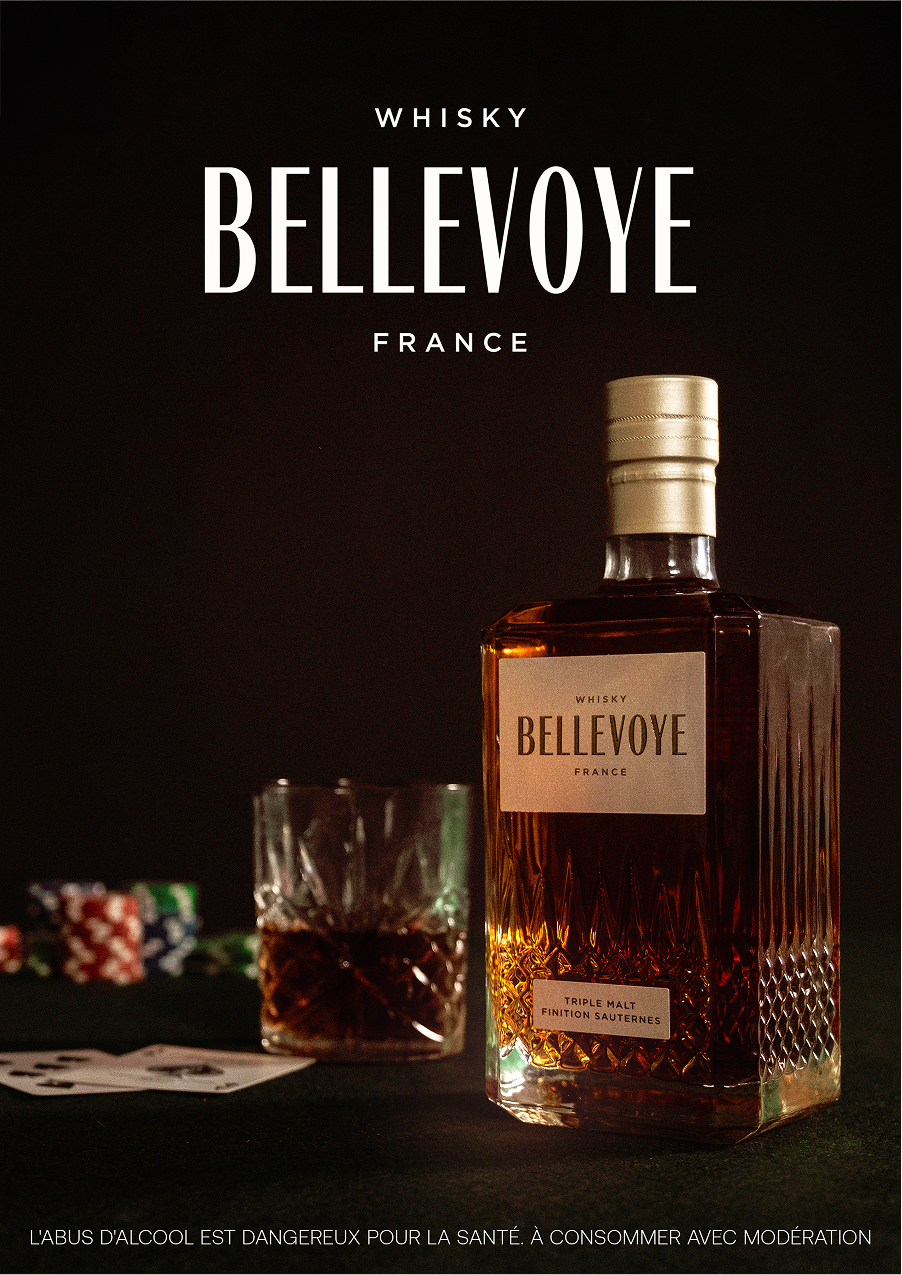 En collaboration avec Ruben Balloux, j'ai conceptualisé et produit une campagne publicitaire pour le Whisky Bellevoye, inspirée de l'esthétique du Parrain et de Casino Royale. Après le storyboard, j'ai géré le tournage (en jouant le rôle principal) et le montage, intégrant une bande-son IA pour une ambiance cinématographique. Le projet a été complété par la création d'une affiche percutante, avec packshot et animation de logo (gérée par Ruben).